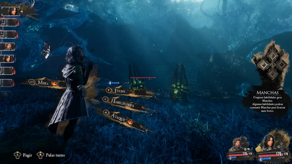 A gameplay de Clair Obscur parte do básico do combate por turnos com elementos de combate em tempo real para deixar tudo dinâmico e divertido. Não é simplesmente atacar e esperar acontecer a animação: temos diferenciais para fazer a experiência agradar até quem critica esse tipo de jogabilidade.