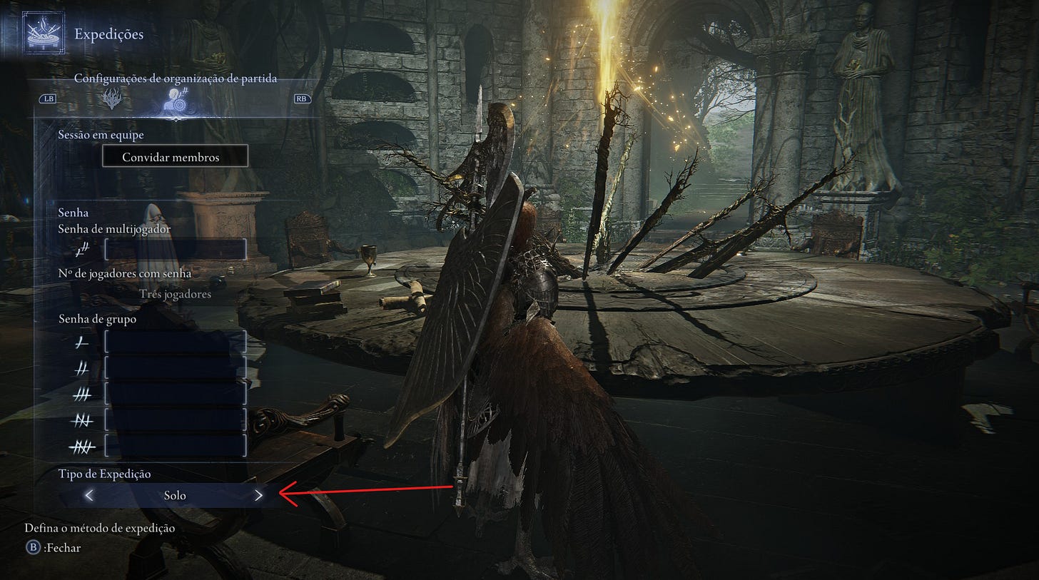 Apesar do foco ser o multijogador em três pessoas — com suporte para duos em breve, a FromSoftware lembrou dos lobos solitários. O modo solo não só existe como também entrega a mesma experiência (com os mesmos perigos e recompensas) da versão cooperativa, o que é ótimo para quem está sem parças para se aventurar no soulslike.