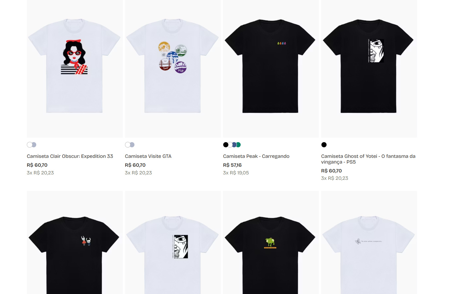 Além das camisetas, a loja também oferece bottons, canecas e pôsteres com artes originais. É o tipo de lugar perfeito para gastar aquele saldo que sobrou do reembolso — ou só garantir um item estiloso pra sua coleção.