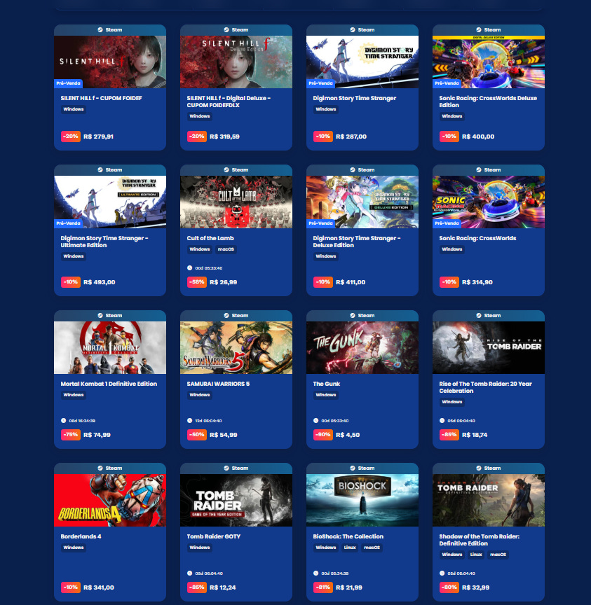 Semana praticamente encerrada e a Nuuvem tem algumas promoções e cupons para vários jogos de PC. Incluindo desconto em dois dos grandes lançamentos recentes, Silent Hill f e Digimon Story Time Stranger. Além disso, a loja digital segue com sua campanha Suuper Feirinha, trazendo descontos de até 90% em clássicos e novidades do PC.