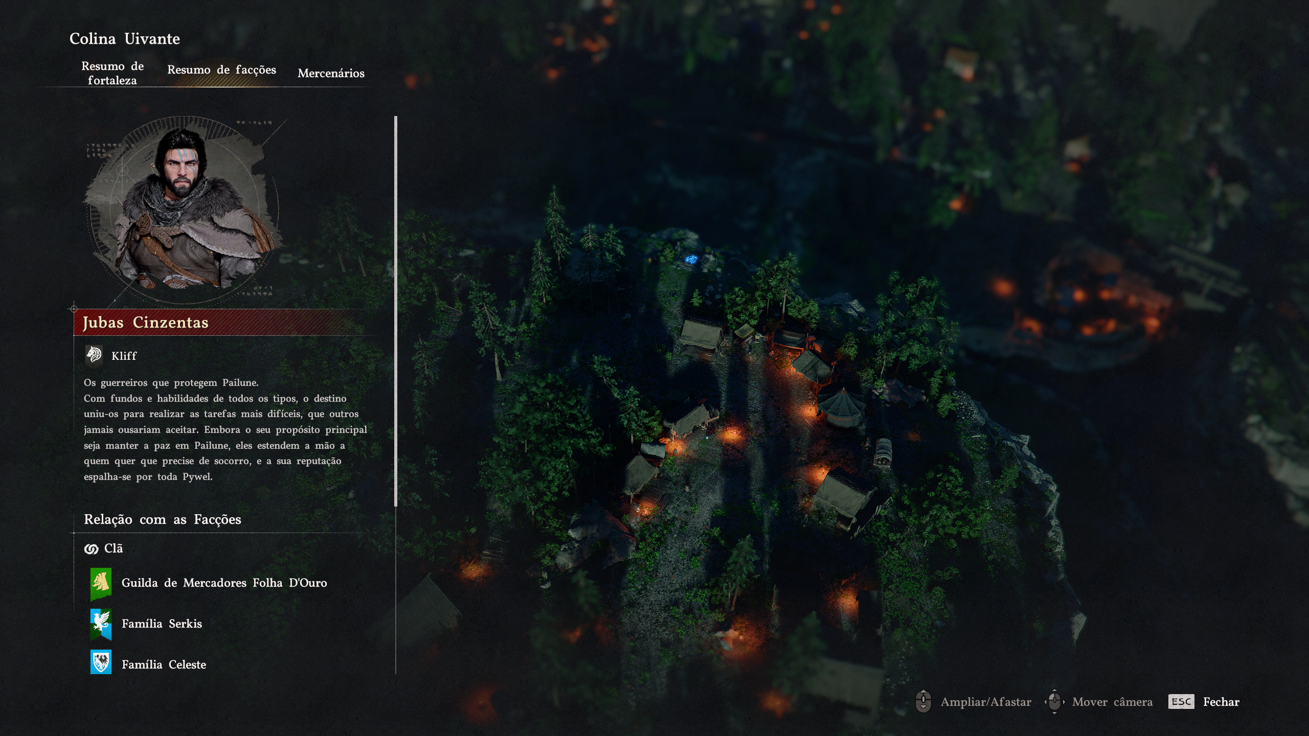 Além disso, o jogo tem um sistema de Evolução de Clã. Conforme você avança, seu grupo de mercenários cresce. Você pode recrutar novos membros, gerenciar recursos e ver sua base de operações se transformar. Tem também um sistema de coleções para os complecionistas de plantão: desde peixes raros até relíquias antigas que contam mais sobre a história do mundo. É conteúdo que não acaba mais.