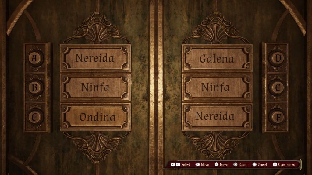 Durante o Capítulo 1, ao avançar pela área do bordel conhecida como La Perla Occulta, você encontrará seis quartos associados a seis mulheres que viviam ali. O jogo exige que você associe corretamente cada nome à porta correspondente usando pistas encontradas em bilhetes e no próprio cenário.