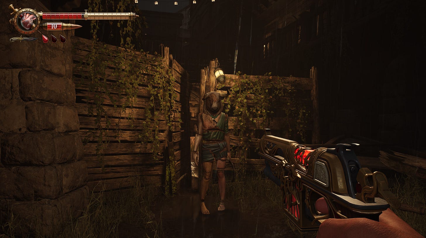 Quando colocamos a mecânica do sangue e a ambientação juntos, na prática, Crisol parece um filho de Bioshock com Resident Evil. O jogo pressiona exatamente as teclas que me fizeram se apaixonar por ambas as franquias, principalmente nos anos mais recentes.