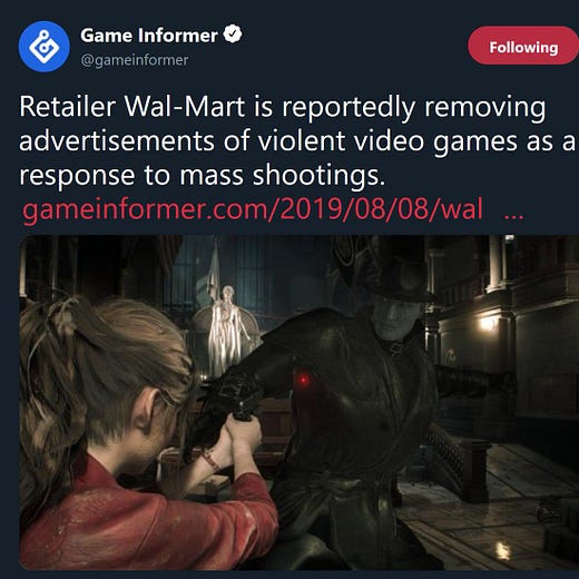 Walmart segue firme na luta contra a violência armada nos Estados Unidos, que é culpa deles, os malditos games. Dica do glorioso Tadeu Mattos, que atirou esse tweet pra gente logo após a publicação da nossa primeira edição.