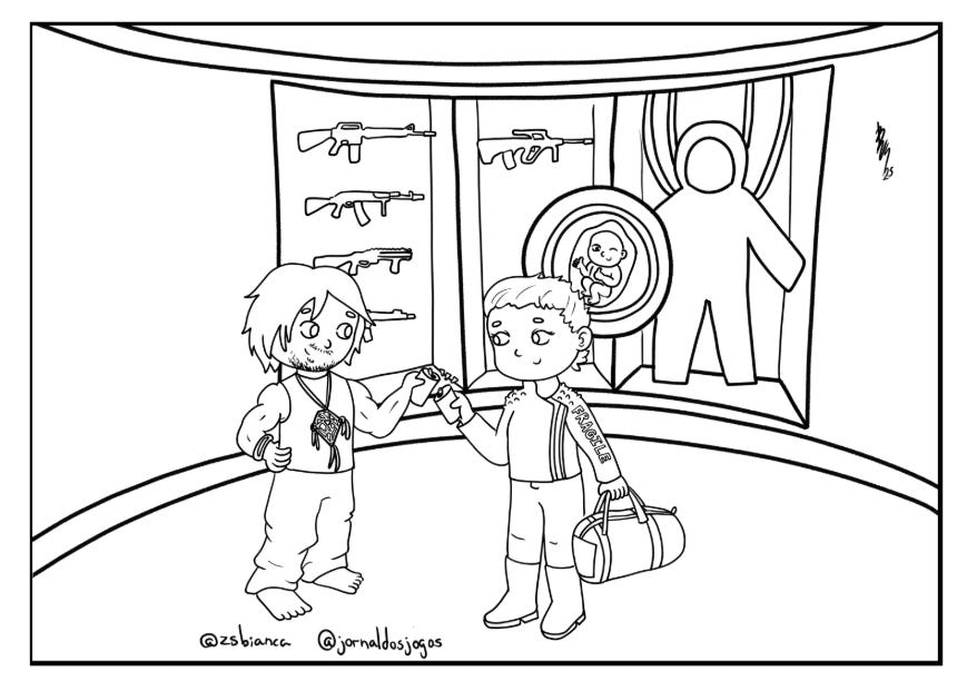 Quem dá vida a essas ilustrações semanais é a artista Bianca Schinaider, da equipe do Jornal dos Jogos. Cada arte é feita com traço autoral, explorando personagens e cenários de games de um jeito único — e o desenho de Death Stranding não é diferente: cheio de atmosfera, cuidado e referências que só os fãs vão sacar.