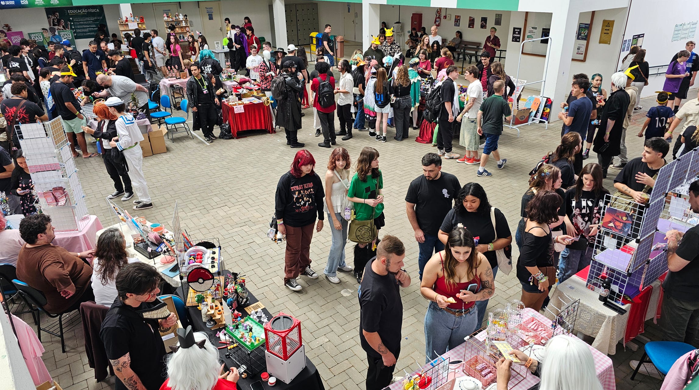 Os bancos e praças da Unoesc também foram povoados por cosplayers conversando, jogando boardgames e trocando cartas de Pokémon TCG. Ao invés de esperar em filas por brindes, como acontece em eventos maiores, feiras menores incentivam algo diferente: conhecer a cultura local e as pessoas ao seu redor.
