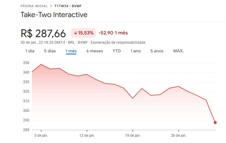 Take-Two Interactive, dona da Rockstar e GTA 6, caiu cerca de 10%, perdendo bilhões em valor de mercado;