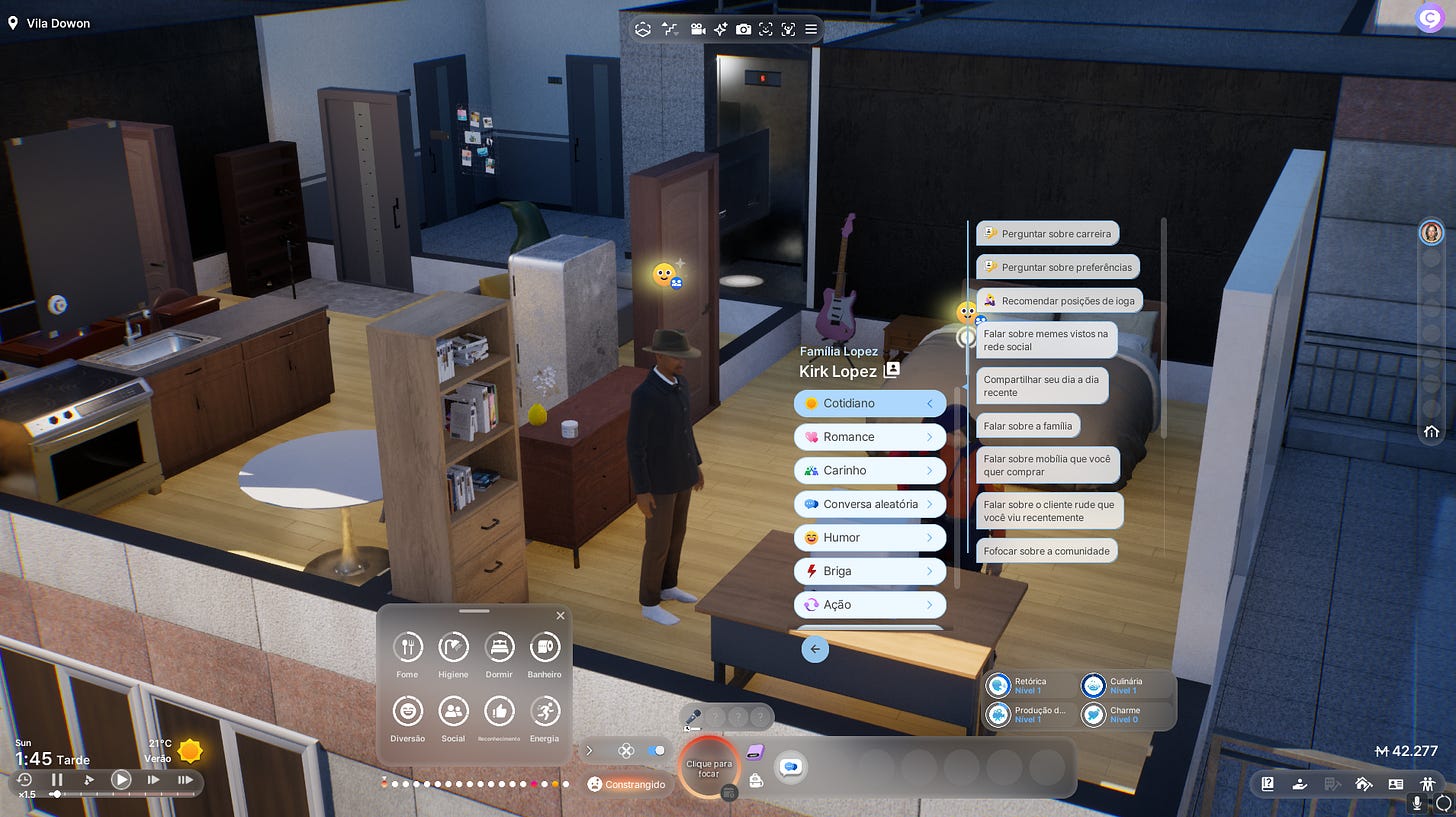 Seguindo na criação, InZOI também conta com um sistema de “Ambições”, que pode render certa confusão em um primeiro momento. A solução serve para guiar os objetivos do personagem, mas dentre muitas opções e menus, o jogador pode ficar perdido e demorar um tempinho para se encontrar dentro do gameplay.