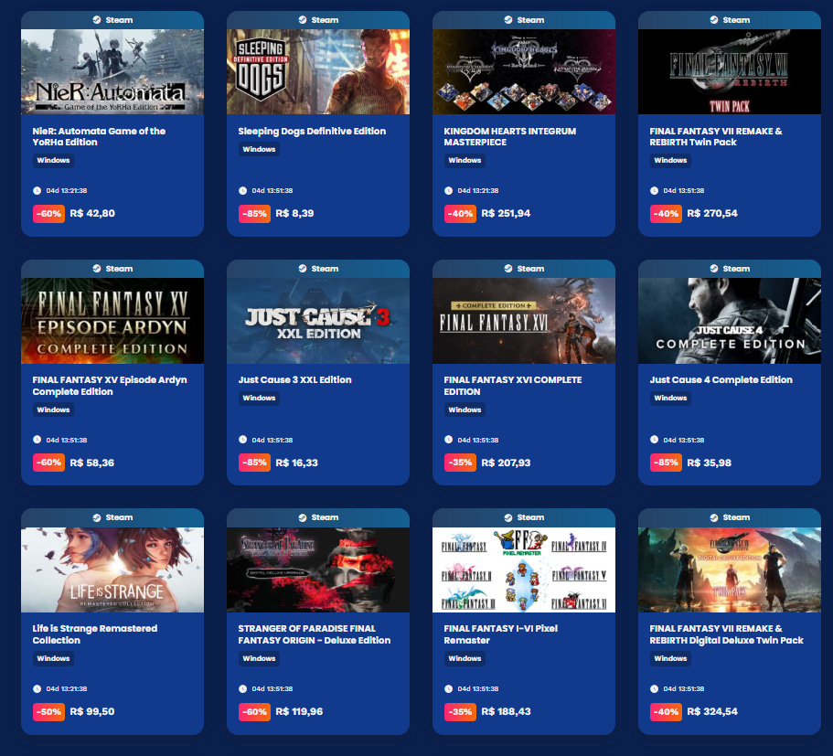 O cupom SQUARE10 também vale para ganhar 10% de desconto em jogos da Square Enix de PC.