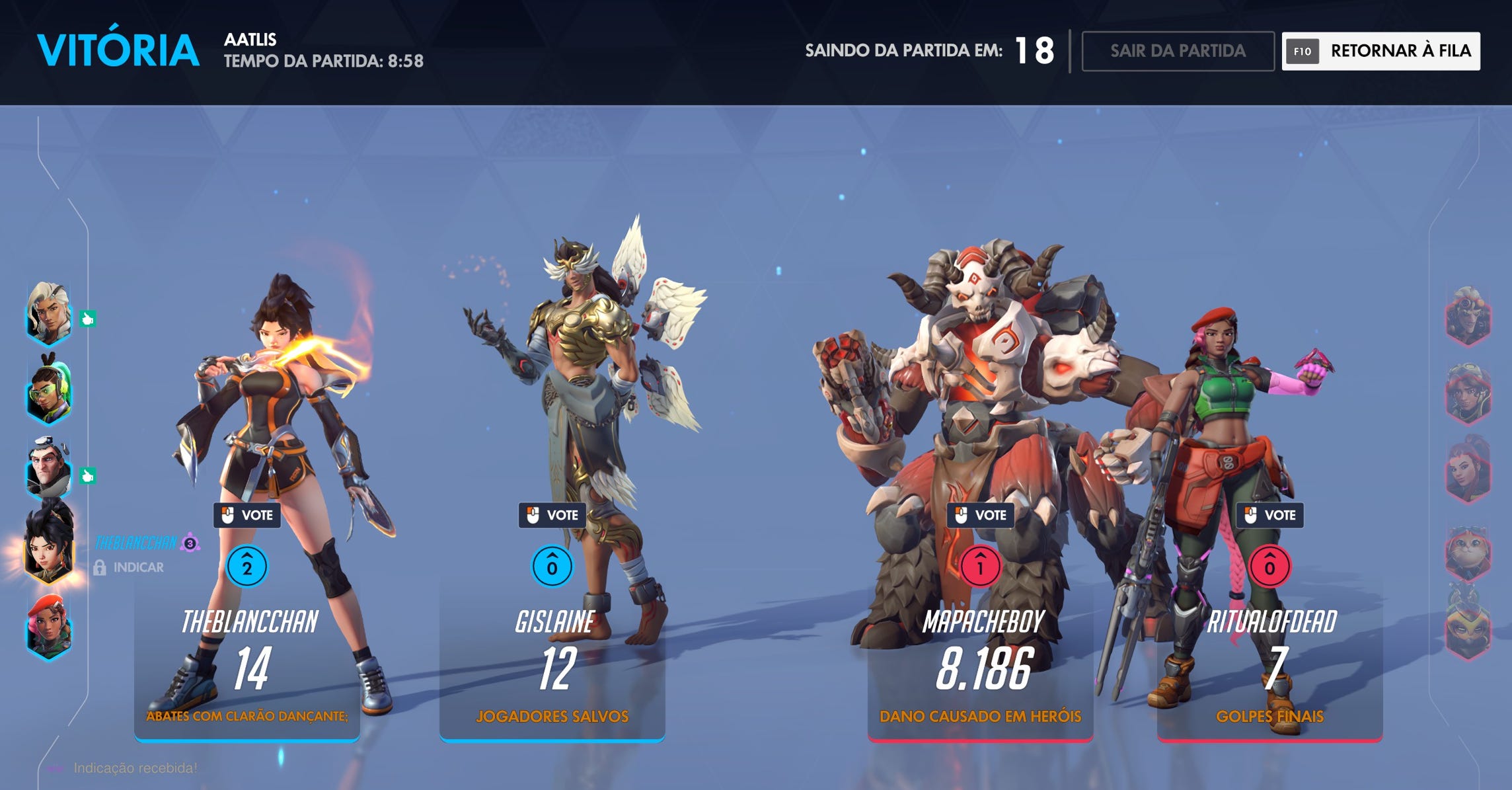 Uma adição interessante é o retorno dos Louros Pós-partida, sistema que permite aos jogadores votarem em quem se destacou na partida. Não necessariamente o jogador com mais eliminações, mas aquele que fez a diferença de outras formas.