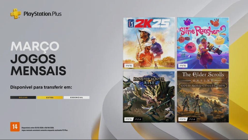 Enquanto isso, vale lembrar que fevereiro trouxe adições importantes ao serviço, incluindo Marvel’s Spider-Man 2 e outros títulos de peso, reforçando a tendência de um catálogo cada vez mais robusto em 2026.
