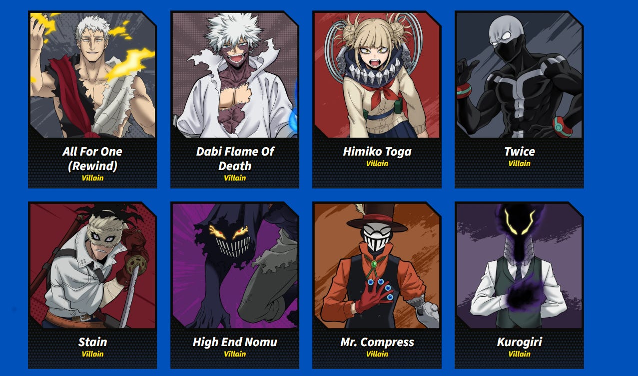 Aqui, o destaque vai para as múltiplas versões do Deku, refletindo diferentes estágios do One For All. Para quem gosta de variar estratégia, isso significa estilos de luta bem distintos — do foco em mobilidade ao puro caos controlado.