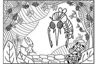 Hornet enfrenta mosquito da dengue em arte de colorir de Hollow Knight Silksong
